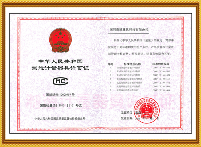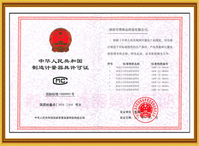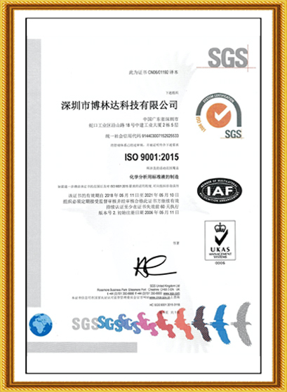 十幾年來,博林達(dá)不僅在標(biāo)準(zhǔn)物質(zhì)領(lǐng)域持續(xù)榮獲國(guó)家級(jí)的資質(zhì)認(rèn)證,2017年10月博林達(dá)更榮獲了“國(guó)家高新技術(shù)企業(yè)”,該項(xiàng)榮譽(yù)是政府對(duì)博林達(dá)的產(chǎn)品領(lǐng)域、研發(fā)能力、專利成果、研發(fā)投入、科技管理水平和人才結(jié)構(gòu)的充分肯定,是又一個(gè)高含金量的國(guó)家級(jí)的資質(zhì)認(rèn)證,同時(shí)也是博林達(dá)發(fā)展史上一座輝煌的里程碑!