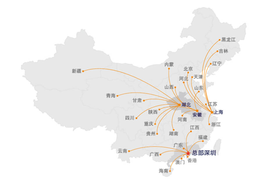 深圳總部服務(wù)區(qū)域:廣東、廣西、江西、湖南、福建、海南、云南、港澳臺